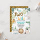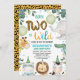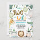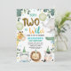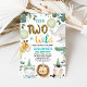 Cute Blue Born To Be Wild 2nd Birthday Invitation safari sur le thème du deuxième anniversaire du mignon garçon avec six animaux douces de la jungle, ballons, casquettes de fête et quelques feuillages.