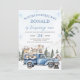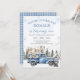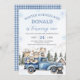 Sweet winter themed birthday invitation for a little boy featuring a blue truck, various woodland animals, pine-tree forest and cabin and some blue snowflakes. This woodland winter themed birthday invitation could be used for any age.