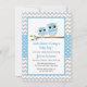 Invitation Cute Blue Owl Grey Chevron Boy Baby shower