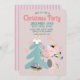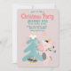 Cette invitation de fête de Noël personnalisée présente une illustration de dessin animé de style boho féminin. Une jolie licorne rose orne son sapin de Noël sous des flocons de neige qui tombent. L'arrière - plan est de couleur rose pâle.