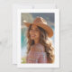 Cute Boho Cowgirl Charming Quinceañera with Hat Invitation Cards in Spanish with Back Custom Photo and a Floral Princess Tiara.