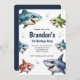 Invitation Cute Boys Watercolor Requin fête d'anniversaire