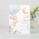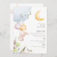 Cute Bunny C'est une invitation de Baby shower de fille. C'est une fille ! Lune. Fleurs. Rectangle. Doux.