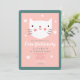 Invitation Cute Chat Rose Vert Violet Étoiles Anniversaire