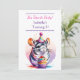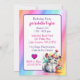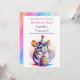 Une adorable invitation à la fête d'anniversaire de fille chinchilla rose et violette. Cute chinchilla en rose, violet, turquoise et orange et beaucoup de couleurs amusantes tenant des cupcakes et des ballons. Si votre fille aime chinchilla alors ceux-ci sont parfaits pour elle! Ajoutez simplement votre invitation à la fête d'anniversaire dans la zone personnalisée.