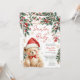 Celebrate your little one’s arrival with this charming Santa Baby invitation, featuring a hand-painted teddy bear in a red Santa hat surrounded by festive holly, berries, and pine. The warm watercolor design blends cozy winter tones with a touch of Christmas magic, perfect for a baby shower held during the holiday season. Its soft aesthetic and cheerful details make it ideal for both boys’ and girls’ celebrations, adding joy to every festive gathering.