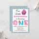 Invitation Cute Cupcake Bleu clair Parties scintillant 1er an