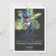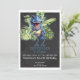 Dinosaure bleu mignon. Invitations spéciales pour les fêtes d'anniversaire, idéales pour tous les âges, ajoutez votre propre texte sans supplément - design présenté sur un arrière - plan de style tableau noir avec feuillage forestier tropical - Invitations personnalisables imprimés ou téléchargeables.
