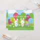 Notre mignonne lapin lapin lapin de lapin de lapin de Pâques L'invitation de la fête de Pâques présente les lapins de lapin les plus mignons tenant un oeuf de Pâques sur une adorable scène forestière avec des arbres, un ciel bleu et une herbe verte avec de jolies fleurs. Customisez vos informations personnelles et vous êtes tous prêts à partir.