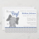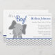 Invitation Cute Elephant Chevron Baby shower bleu marine