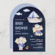 Invitation Cute Elephant Nautical Boat Navy Blue Baby Shower