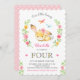 Invitation Cute Floral Bunny Girl 4e Quatrième 4 fête d'anniv
