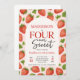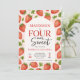 Cute fraise Four Ever Sweet 4th Birthday Invitation. Invitation à quatre ans - Fraise modifiable - Célébrez la 4e de votre petit avec une fête sucrée aux baies! Parfait pour un bain d'anniversaire amusant et fruité.
