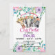 Invitation Cute Giraffe Zebra jungle Animaux Anniversaire Flo