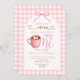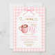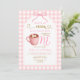 Invitation Cute Girl Bow Hot Cocoa 1st birthday Pink Gingham