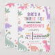 Celebrate your little girl’s third birthday with this adorable dinosaur-themed invitation! Featuring soft pastel colors, cute girl dinos, and playful hand-drawn illustrations, this “She’s a Three Rex” design is perfect for a fun and joyful kids birthday party.