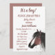 C'est un garçon ! Joli cheval brun illustration bébé garçon douche invitation. Baby shower. Rustique, peinture à l'aquarelle par Monika Howarth. Nature, Ouest, ferme, animaux de campagne, illustration baby shower invitation. Design floral. Personnalisez-le avec vos détails.