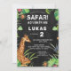 Laissez votre petit aller dans une aventure safari avec cette mignonne invitation d'anniversaire. Cette fête d'anniversaire de safari dans la jungle présente une girafe douce entourée de feuilles tropicaux et de jolies fleurs, le tout contre un arrière - plan branché en damier. Le dos de la carte a un motif de feuilles botaniques. Mélangez et comparez cette collection d'anniversaires de enfants animaux safari avec d'autres objets adorables pour le grand jour de votre enfant.