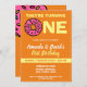 Invitation Cute Kawaii Donut Orange Joint Twin 1er Anniversai