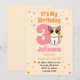 Celebrate your little one's special day with this adorable kitten birthday invitation! Featuring a cute orange tabby kitten with rosy cheeks and playful polka dots, this design is perfect for any cat lover's party. The soft pastel background and the number '3' add a sweet touch, making it ideal for a third birthday celebration. Customize the text to include all your party details for a truly personalized touch. This charming invitation sets a joyful and whimsical tone for a memorable birthday event, ensuring your guests are excited to attend.