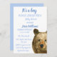 C'est un garçon ! Mignonne illustration d'ours brun bébé garçon, invitation baby shower neutre pour le genre. Baby shower. Rustique, ours, aquarelle de Monika Howarth. Nature, animaux des bois, baby shower d'illustration bleue. Personnalisez-le avec vos détails.