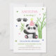 Cute baby panda kids birthday invitation featuring an adorable panda wearing party hat with a panda footprint, bamboo and stars at the background.