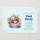 Invitation de la fête de la piscine d'été avec une adorable image estivale. Une aquarelle avec un panda noir et blanc assis dans une bague de baignade dans l'eau. Entouré de jolis fleurs sauvages. Un ours totalement froid.