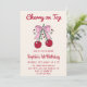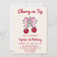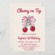 Invitation Cute Pink Bow Cherry on Top 1st Birthday