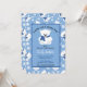 This adorable polar bear invitation is perfect for a winter time baby shower. The invitation features an adorable polar bear with a warm and cozy blue scarf sitting among a background of snowflakes and mini polar bears. The invitation announces "a little cub is on the way" and allows you to enter the guest of honor's name, the date and time of the shower, the address, and the rsvp information.