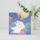 A cute fluffy white puppy with colorful balloons in night sky filled with stars
