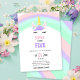 Faites de l’anniversaire de votre petite fille un événement spécial avec cette mignonne invitation d’anniversaire à la licorne arc-en-ciel ! Doté d'un design magique d'arc-en-ciel pastel, d'une gentillesse fantaisiste et d'une licorne de charme face à un arrière - plan violet rêveur, cet invitation est parfait pour toute célébration d'anniversaire. Qu’il s’agisse d’une fête à thème de conte de fées ou d’une aventure amusante à la licorne, cette adorable invitation donnera le ton parfait. Idéal pour les filles qui aiment tout ce qui est enchanteur, cet invitation promet une fête remplie de joie, de rire, et d'un parfum de magie !
