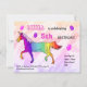 Invitation Cute Rainbow Unicorn Fille fête d'anniversaire