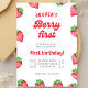 Invitation Cute Red Berry First Birthday Watercolor