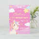 Invitation Cute rose magique moderne licorne étoile 1er anniv