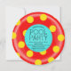 Amusants die cut ronde piscine intérieure flotter invitation à la fête en rouge & jaune. Moderne & mignon pour une fête d'été adulte piscine, une fête de piscine pour enfants, une fête de plage ou un barbecue de cuisine se réunissent.