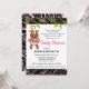 © 2012 Socialite Designs. Rose avec des rayures de zèbre noir et jolie petite fille singe design baby shower invitation. Un invitation charmant à envoyer aux invités pour célébrer la naissance prochaine d'une petite fille.