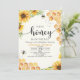 Lindo diseño para tu baby shower de niña o niño con una Hermosa Tematica de Flores de Girasol y abejas con la Frase " A LITTLE HONEY IS ON THE WAY". con linda tipografia en color negro y un fondo amarillo claro es ideal para recibir a esa trozo de miel que viene en camino!. Personalice esta invitación para baby shower para niña o niño añadiendo sus propios detalles de evento, y no olvide consultar la coleccion para elementos complementarios para tu fiesta de baby shower.