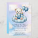 Featuring a sweet teddy bear holding pastel balloons, this soft and elegant design is perfect for a gender-neutral baby shower, welcoming both boys and girls.