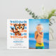 Invitation de fête d'anniversaire avec une photo pour célébrer le 3e anniversaire d'un petit garçon. Design moderne avec couleurs orange et bleu pour une fête pour enfants. Si vous préférez l'orange arrière s'il vous plaît cliquez sur le bouton pour modifier la conception.