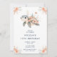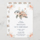 Belle invitation de fête d'anniversaire avec une tortue aux arrangements floraux roses de corail. Parfait pour une fête d'anniversaire. Les mots peuvent être changés en fonction de vos propres détails ou exigences