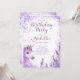 Cute Violet arc-en-ciel Parties scintillant Floral Unicorn Anniversaire Invitation