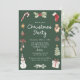 Celebrate the holidays in style with this cute watercolor Christmas party invitation surrounded by hand-painted festive illustrations. The border showcases a candy cane, holly berries, red stocking, teddy bear, pinecone, Christmas tree, ornament, snowman, wrapped gift, and ribbons — all rendered in a soft watercolor style. Set against a dark green background, “Christmas Party” appears in white handwritten script above your event details, creating a timeless and cozy holiday look. Perfect for family or kids’ Christmas parties, festive dinners, and joyful seasonal gatherings.
