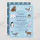 This cute, gender-neutral baby shower invitation features winter animals, such as an Arctic Fox, Polar Bear, Reindeer, Walrus, Narwhal, Penguin, Gray Seal, and Snowy Owl. The reverse side features a pattern of snowflakes. Personalize for your needs. You can find more matching products at my store.