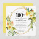 De belles compositions florales printanières ornent des jonquilles jaunes et blanches décorant un cadre rustique. La verdure et les tiges de jonquilles assorties lui confèrent une ambiance boho moderne. Le dos de l'invitation du 100e anniversaire est jaune ensoleillé et lumineux. Un choix parfait pour une fête d'anniversaire au printemps.