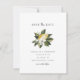 Ceci enregistrer l'invitation de date comprend des citrons d'agrumes aquarelle et des accents floraux blancs avec une police de caractère cursive.