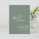 Une invitation à la douche nuptiale verte et verte à l'olive moderne avec un design simple et minimal avec le titre de l'événement dans un script élégant et une police sans serif contemporaine. Vous trouverez ci-dessous, dans le coin inférieur droit, les détails de votre événement dans un agencement minimaliste.
