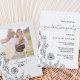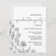 Cette carte dainty élégance graduation party d'invitation est parfaite pour une grande fête minimaliste. Le design floral présente un agencement sobre et élégant de fleurs sauvages noirs et blancs délicats jumelés à une police calligraphique romantique. Personnalisez le dos avec une photo et l'année de graduation.