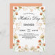 Dainty Fleur sauvage White Mère's Day Dinner Invitation. Une belle célébration de votre mère avec des fleurs orange et jaune. Personnalisez ce modèle avec vos informations. L'arrière - plan coloré sur le dos est personnalisable.