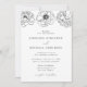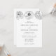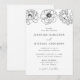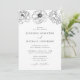 Élégantes invitations à un mariage floral avec une bordure supérieure de somptueuses fleurs noires avec un arrière - plan blanc. Personnalisez les invitations aux mariages floraux en noir et blanc avec vos noms et détails mariages en lettres blanches avec accents de script de calligraphie. Conçu pour coordonner avec notre collection de mariages floraux Dainty.