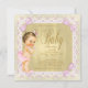 Invitation baby shower rose et or avec belle arrière - plan or et adorable petite princesse portant pantalon rose et chapelet de perles sur une belle élégante dentelle rose et or et arrière - plan arc. Cette adorable invitation au baby shower rose et or de dainty est facilement customisée pour votre événement en ajoutant les détails de votre événement, le style de police, la taille et la couleur de police et le libellé. Il s'agit d'un design imprimé sans papier, parties scintillant, bijoux, arcs, etc.